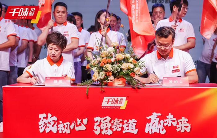 接下來(lái)營(yíng)銷(xiāo)會(huì)議的重頭戲隆重登場(chǎng),千味央廚各團(tuán)隊(duì)揮動(dòng)隊(duì)旗喊出口號(hào),進(jìn)行了一場(chǎng)震撼人心的誓師大會(huì),一展優(yōu)秀團(tuán)隊(duì)風(fēng)采。全體銷(xiāo)售人員滿懷激情,乘勢(shì)而上立下軍令狀,向2024新財(cái)年目標(biāo)邁進(jìn)!